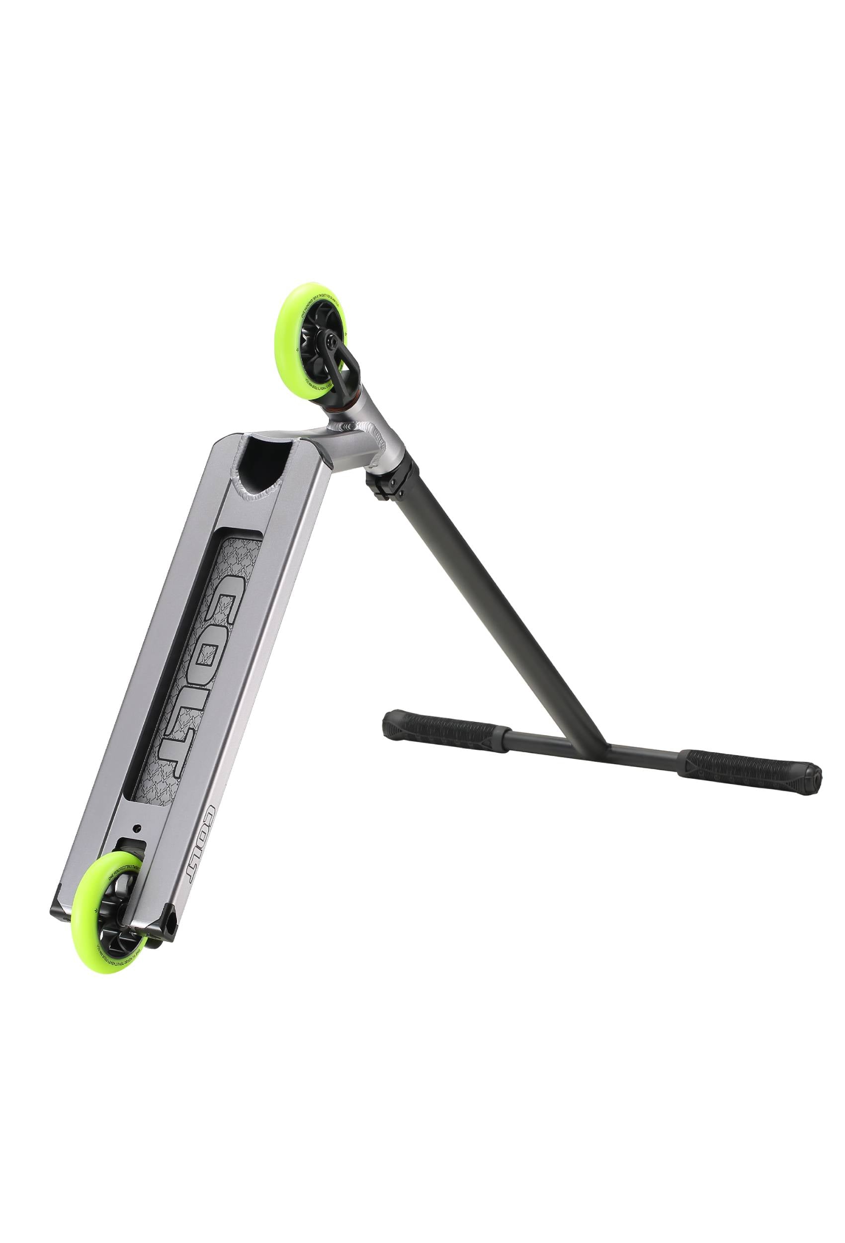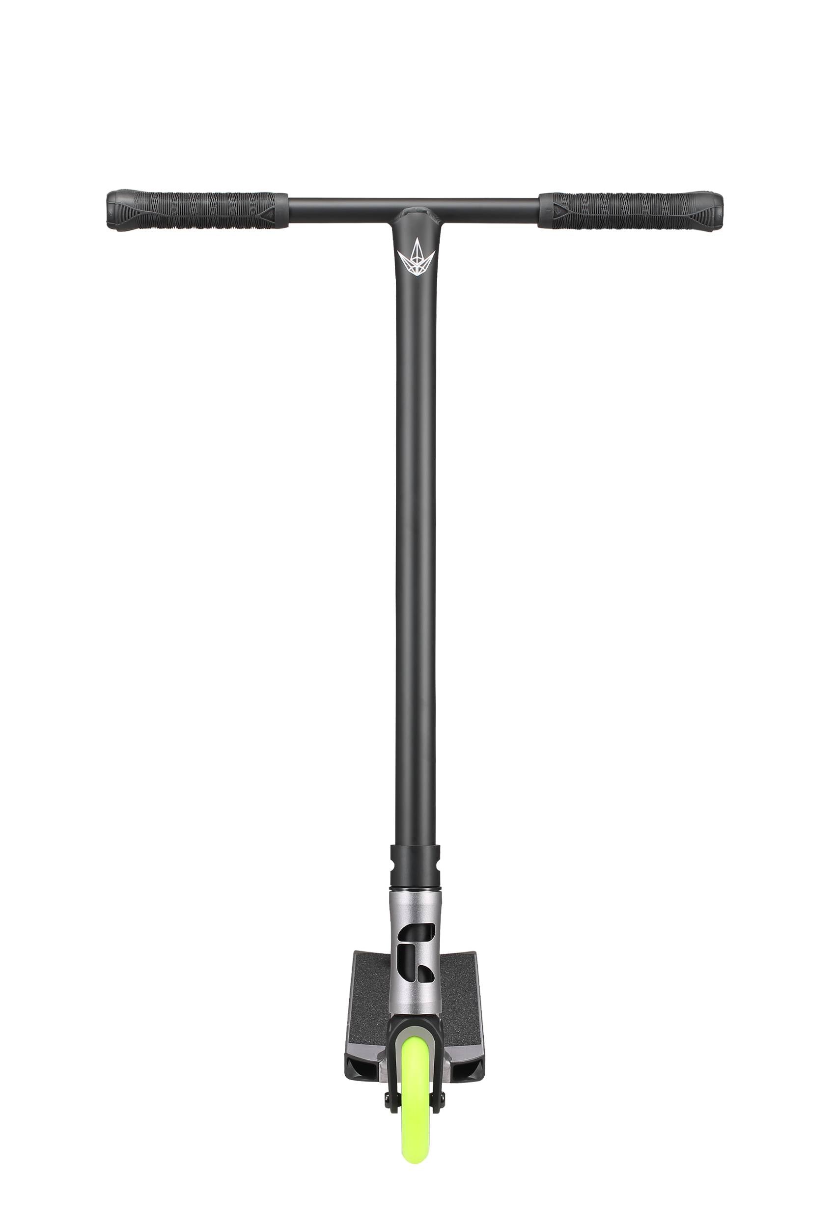 Lightweight, butted T style bars, Boxed out deck and rolling on 110’s this scooter can handle it all.