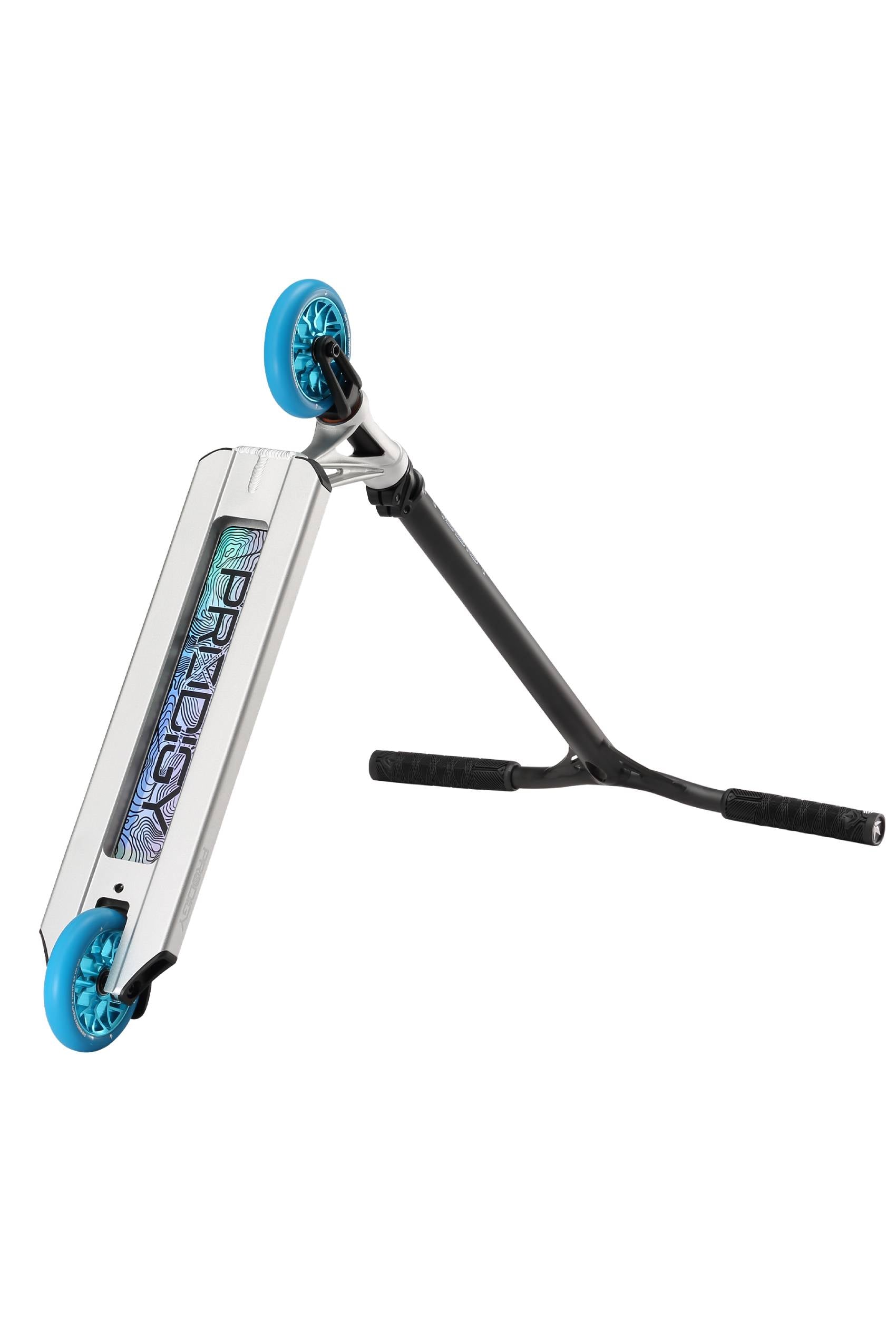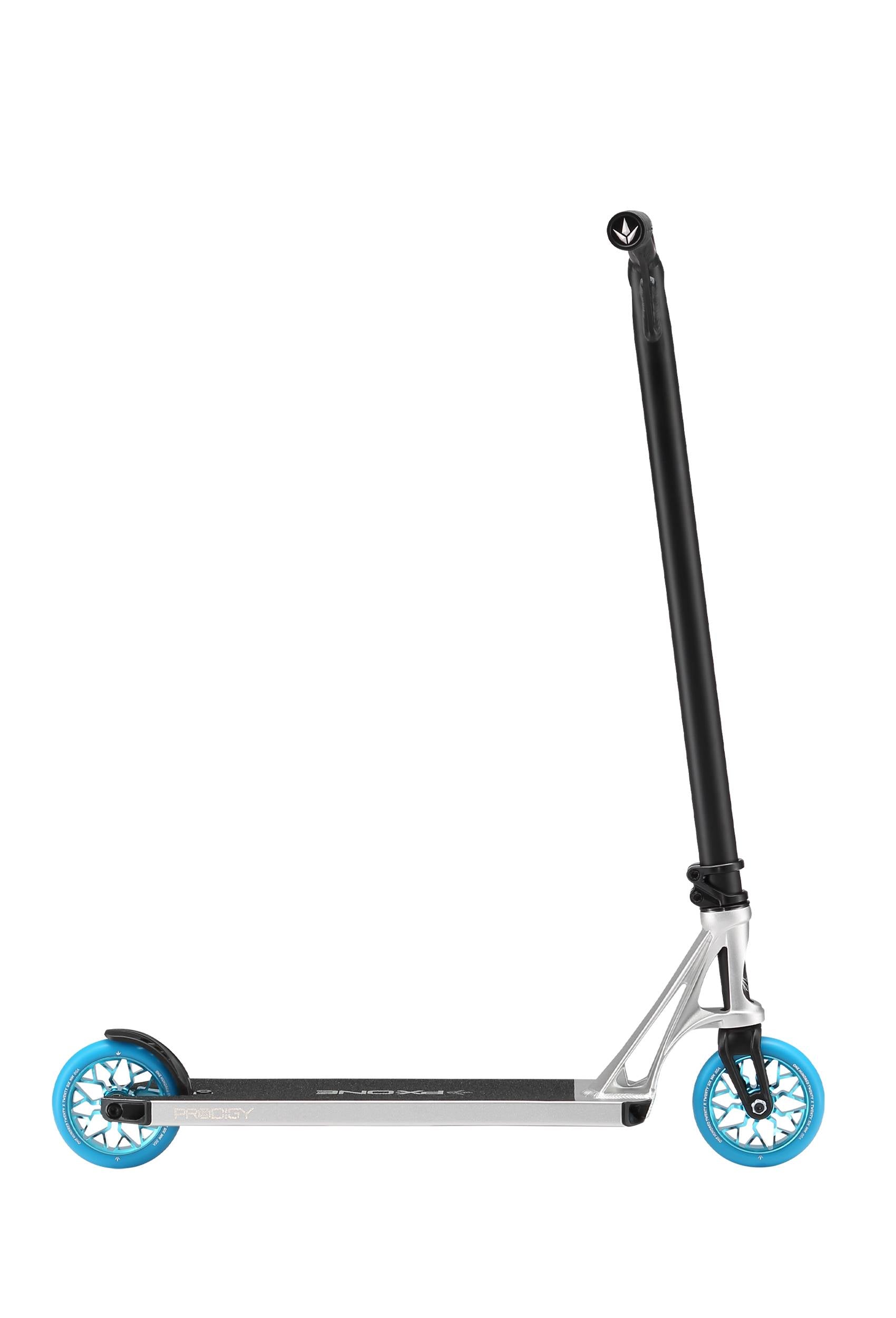 The Prodigy X ONE - PX ONE for short is the eleventh series in the PRODIGY line, built upon 10 generations and 14 years of professional- level complete scooters. The massive upgrades from PX continue including - Extech extrusion with its stealth lower profile, wider internal walls, boxier construction featuring a high responsive concave. The deck is still with its wider dimensions 5” W x 19.5” L The PX Headtube has been refined maintaining its increased contact with the deck with a now added durable anchoring weld to ensure this deck can take anything you throw at it. , Grip tape with increased grit count, Durable nylon deck plugs and V2 Nylon brake system, IHC LOW stack headset compression cap with pro level bearings to keep you spinning with all of it rolling on the SECTOR 120mm x 26mm PU wheels 86A.