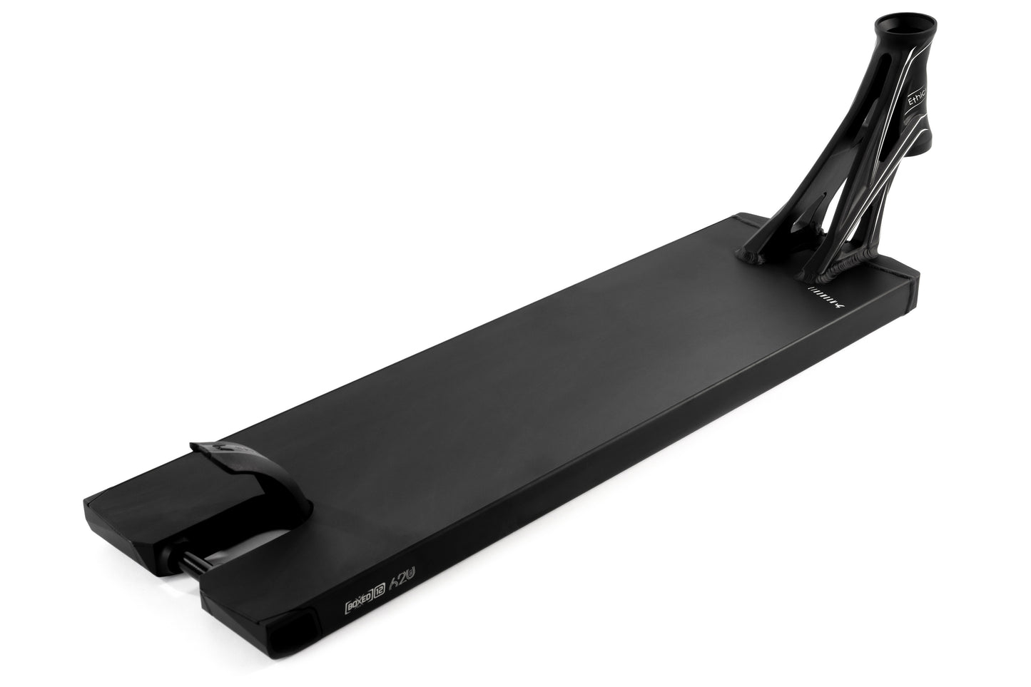 The Ethic Lindworm V4 is a high performance scooter deck. Prepare to dominate the streets with the deck's box-cut shape, offering stable grinds, additional foot space for landings, and eliminating the need for pegs. This Ethic DTC scooter deck accommodates most contemporary wheel sizes and supports wheels up to 125mm. Moreover, along with the standard 24mm wheel hub width, you receive all the essential components to fit wider 30mm wheel hubs to this deck.